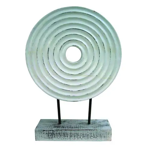 Gelochte Scheibe auf Sockel. 42cm hoch 30x10x42cm Nadelholz, weiß lasiert