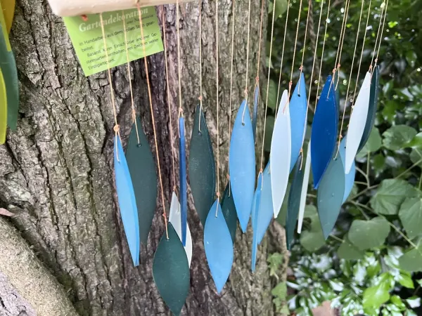 Dieses einzigartige Glaswindspiel 'Blätter' ist ein wunderschönes Stück Dekoration für Ihr Zuhause oder Ihren Garten. Handgefertigt auf der Insel Bali aus recyceltem Treibholz und Meeresglas, ist jedes Stück ein Unikat. Die zarten Glasteilchen fangen das Licht auf bezaubernde Weise ein und erzeugen ein sanftes Klingeln, wenn sie vom Wind bewegt werden. Mit einer Länge von etwa 44 cm (17-18 Zoll) ist es die perfekte Größe, um es an einem Baum, einer Veranda oder einem Fenster aufzuhängen. Dieses Glaswindspiel ist nicht nur dekorativ, sondern auch nachhaltig, da es aus recycelten Materialien hergestellt wurde. Es ist ein wunderbares Geschenk für Naturliebhaber, Strandfans oder alle, die etwas Besonderes suchen, um ihr Zuhause oder ihren Garten zu verschönern.