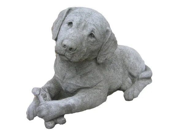Steinfigur Hund, Labrador mit Knochen, Gartenfigur, Tierfigur, 40 cm hoch