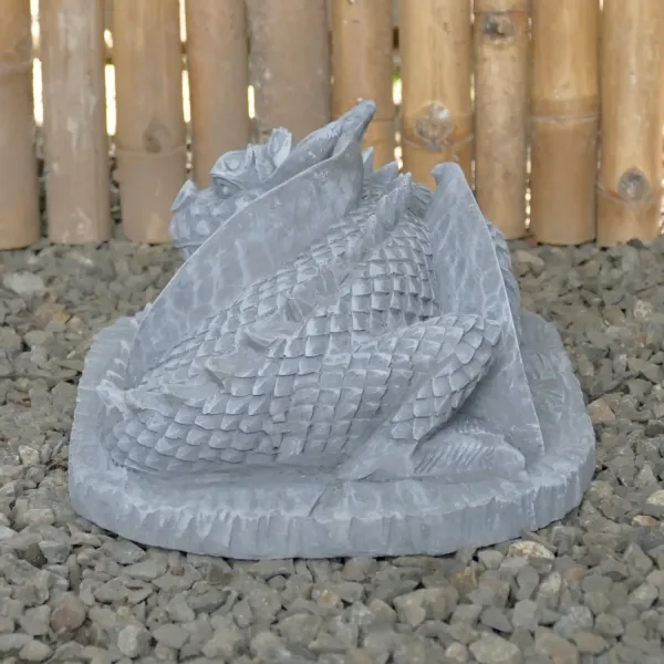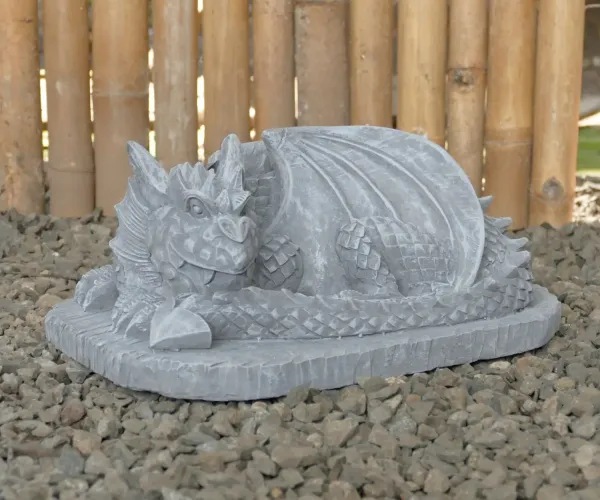 Jaro -Liegender Drache auf Sockel, 30cm L | Steinguss