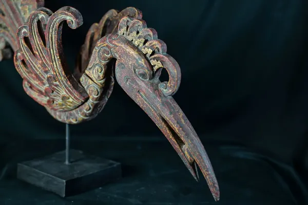 handgearbeitetes, dekoratives Designstück, Paradisvogel aus Kokosnuss,
