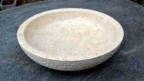 Schale aus Marmor - Dia. 40 cm - außen grob bossiert