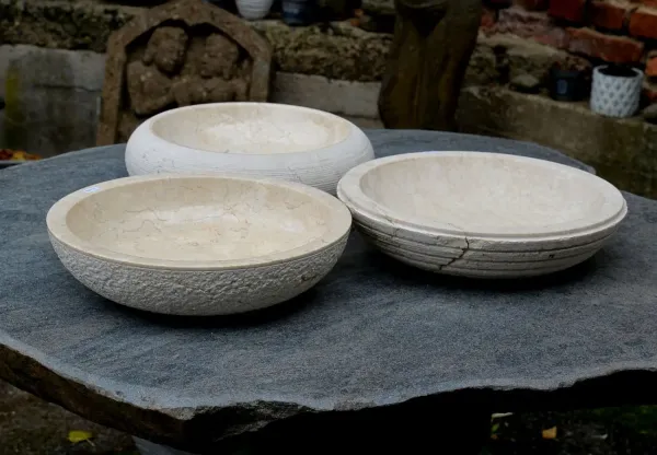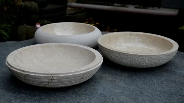 Jeder der Steinschalen ist von innen glatt und poliert um so einen wunderschönen Glanz zu erzeugen.