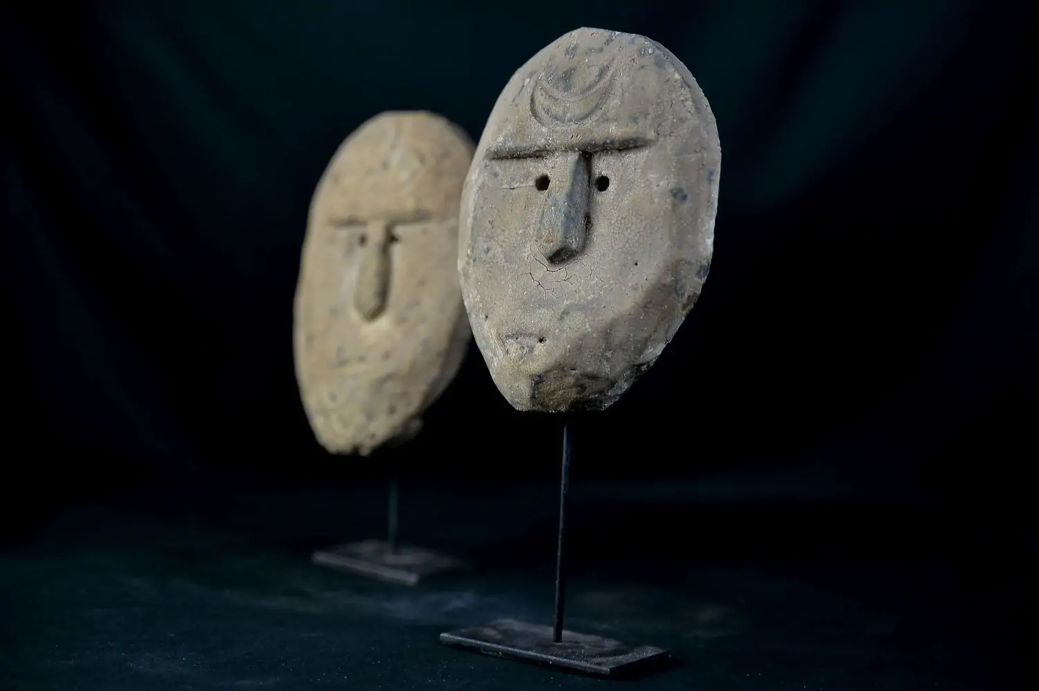 handgearbeitete, dekorative Masken aus Kokosnuss, primitives Motiv, 2er Set