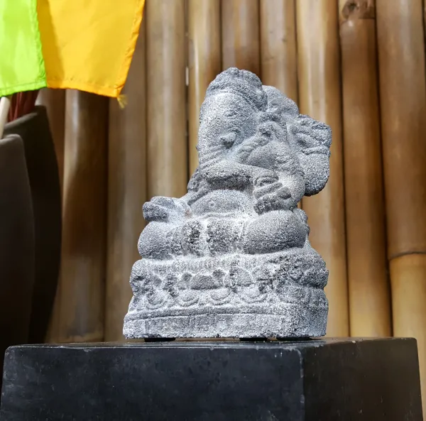 Ganesha, der Gott mit dem Elefantenkopf, ist einer der bekanntesten und beliebtesten Götter der Hindus. Er steht für Glück und Erfolg bei allen Unternehmungen, verkörpert Intelligenz und Weisheit, ist zuständig für Tanz, Musik und Poesie, gilt als Schutzherr der Wissenschaften und der Kaufleute. Als Herr allen Anfangs wird er angerufen, um Glück und Erfolg bei Reisen, bei Veränderungen im Leben, bei jeder Art des Neuanfangs zu erbitten. Statuen und Reliefs des Ganesha sind als Glücksboten nicht nur in Tempeln, sondern auch in vielen Wohnhäusern zu finden. Bei einem Umzug ist es für die meisten gläubigen Hindus selbstverständlich, in ihrem neuen Heim als Erstes eine Ganesha-Statue aufzustellen, um damit Glück und Segen auf ihr Zuhause herabzurufen.
