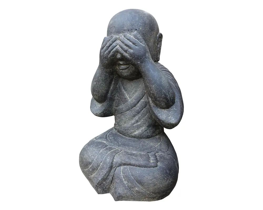 Sitzender Mönch mit geschlossenen Augen aus Steinguss (Vollguss) in 45 cm Höhe, handveredelt & coloriert