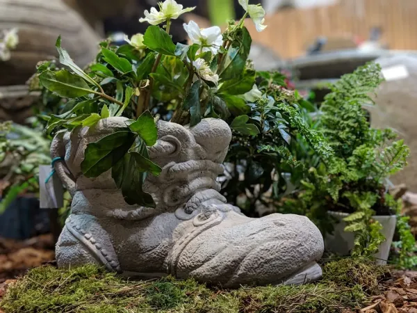 Urige Stiefel-Figur zum Bepflanzen mit den Abmessungen 40x22x23 cm (LxBxH) und 1,2 kg Gewicht