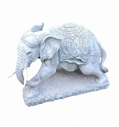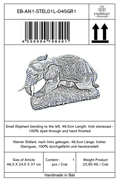 Indra - Kleiner Elefant, nach links gebogen, 46,5cm L | Steinguss
