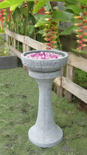 EYEBRIGHT - Stonecraft In Bali produzieren wir diesen hochwertigen Steinguss in unserer eigenen Manufaktur. Mit speziellen Verfahrenstechniken können wir detaillierte Abgüsse herstellen. Wir mischen das Rohmaterial mit Pigmenten, so dass der Guss durchgefärbt wird. Mit einer speziellen Außenfarbe setzen wir einen weiteren oberflächlichen Akzent. Während der Frostperiode sollten Sie darauf achten, dass die Figur nicht im Wasser steht, sondern z.B. auf einem Kiesbett.
