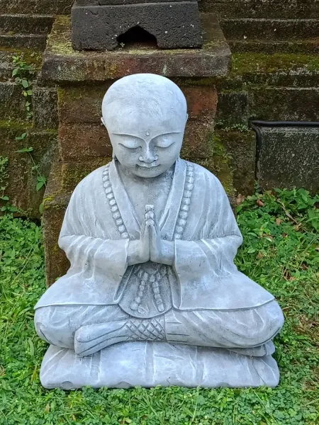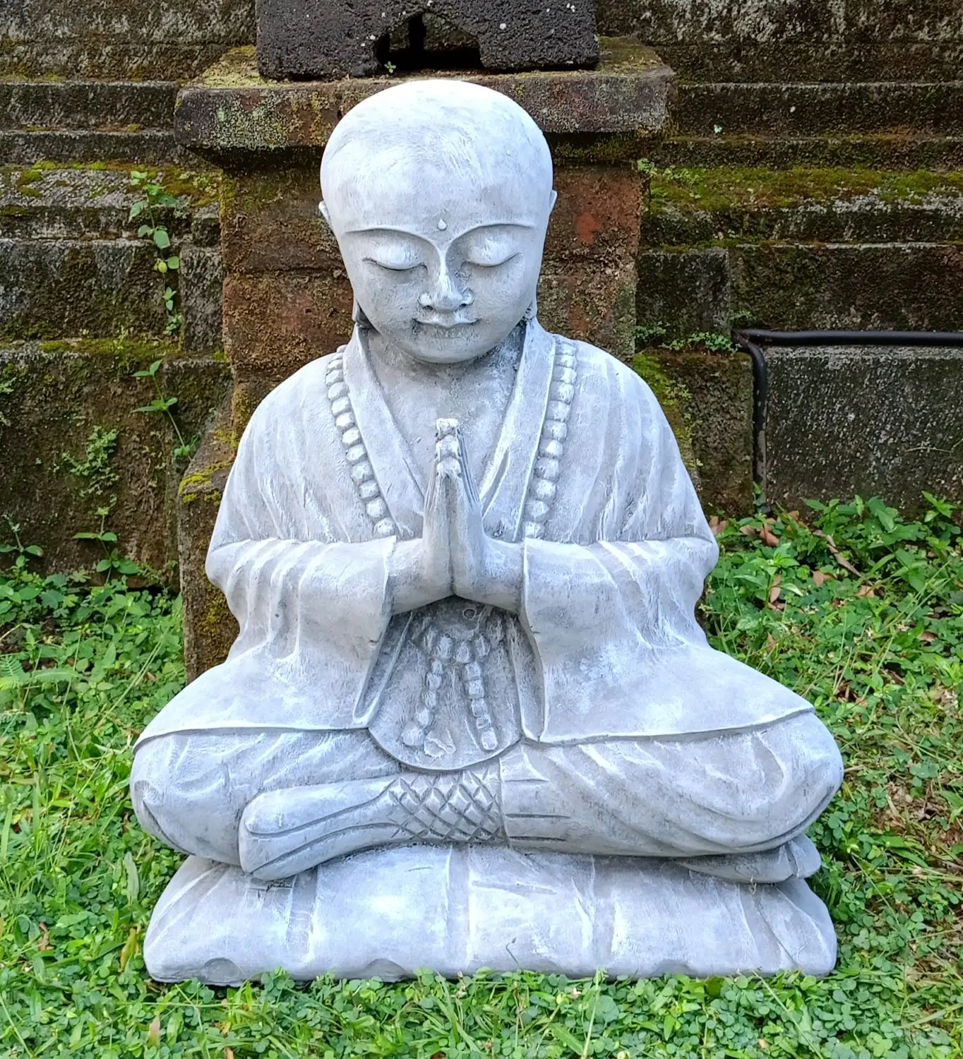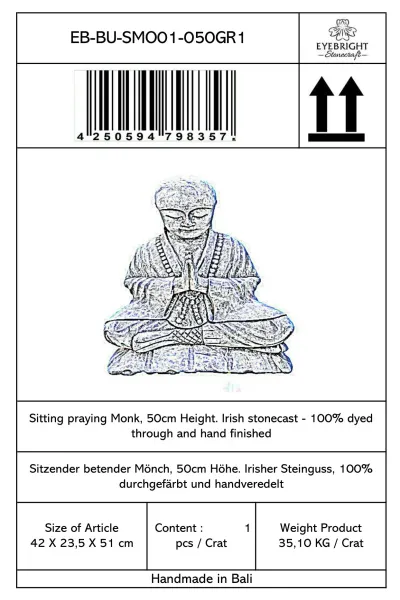 Rokesh - Sitzender betender Mönch, 50cm H | Steinguss