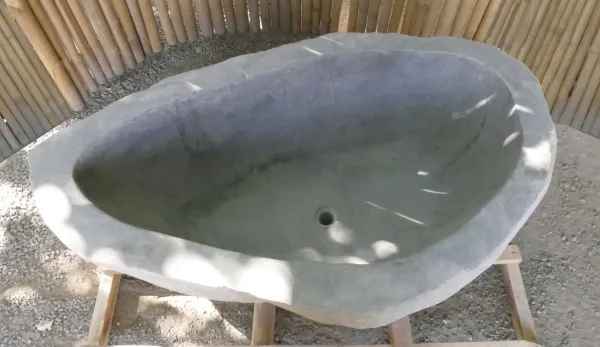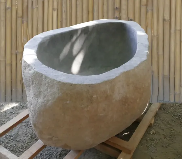 Ein Wasserbecken ist ein wunderbarer Teil einer natürlichen Gartengestaltung, es zieht viel Gartenleben an, kann Heimat für Seerosen und andere attraktive Pflanzen sein. Unser Wasserbecken ist vom japanischen Tsukubai inspiriert, einem traditionellen Waschbecken und Teil der klassischen japanischen Gartengestaltung. Tsukubai wurden ursprünglich in japanischen Teegärten verwendet, um sich vor dem Betreten der Teehäuser für die traditionellen Teezeremonien zu waschen. Das Wort tsukubai bedeutet hockende Schale" oder "gebücktes Becken" und sollte zur Demut und Reinheit von Körper und Geist anregen. Diese gastfreundliche Geste bedeutete auch, dass man sich von den Sorgen der Welt reinwaschen sollte, bevor man bei einer einfachen Tasse Tee in enger Gemeinschaft zusammensitzt. Das tsukubai ist ein Waschbecken am Eingang eines heiligen Ortes, in dem sich die Besucher durch rituelles Waschen der Hände und Spülen des Mundes reinigen können. Diese Art der rituellen Reinigung ist der Brauch für Gäste, die das Gelände eines buddhistischen Tempels besuchen. Das steinerne Gartenbecken hat ein Loch von 42 mm (wie bei einem europäischen Waschbecken). Das Becken ist mit einem Gummistopfen versehen, der das Loch im Becken abdeckt, damit das Wasser abfließen kann. Die Abbildungen zeigen Originalfotos und bei Bestellung wird genau dieser Artikel geliefert!Im Winter, während der Frostperiode sollte das Becken leer sein, um Schäden am Stein zu vermeiden. Sich ausdehnendes Eis kann den Stein zum Reißen bringen.