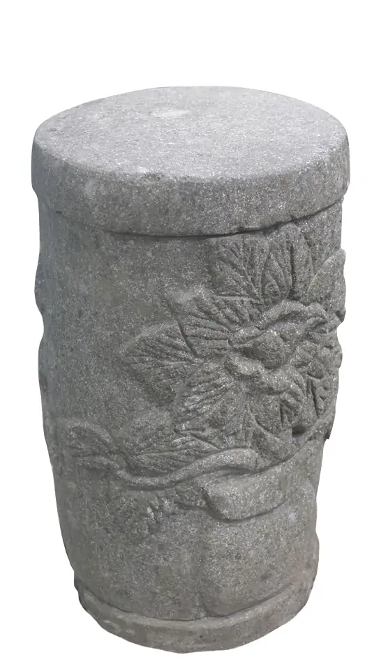 Stone stools made of natural stone (basanite) with a flower motif, stonemason's work
