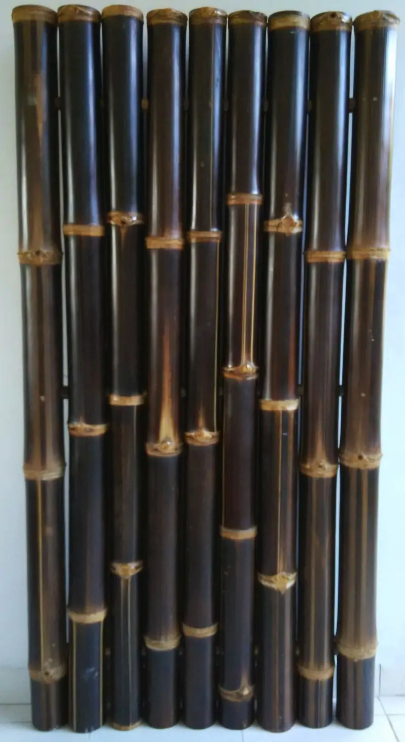 bamboo fence (full cane), rigidly connected with bamboo, brown-black, slightly conical, varnished, ca. 90x180 cm, Ø 3-5 cm