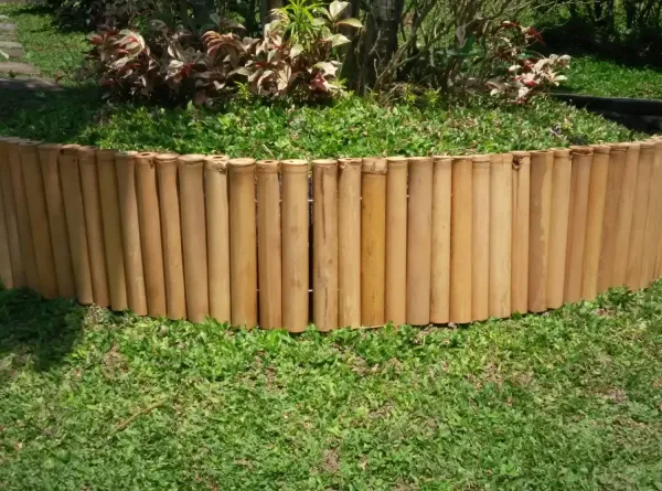 Bamboo panelling Wulung (black-brown) with flexible stainless steel. Diameter 3-5cm 206x32 cm Height.