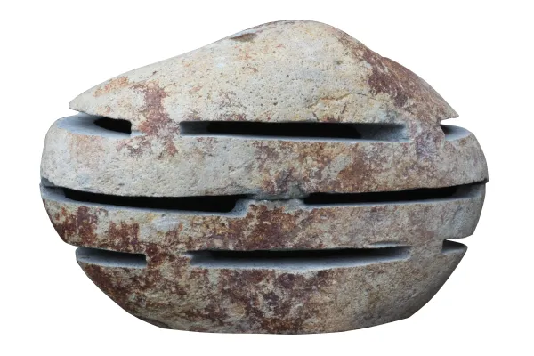 The lantern made of river stone is handmade and hollowed out. The stone lantern can be electrified. The hole for cable routing is provided.
