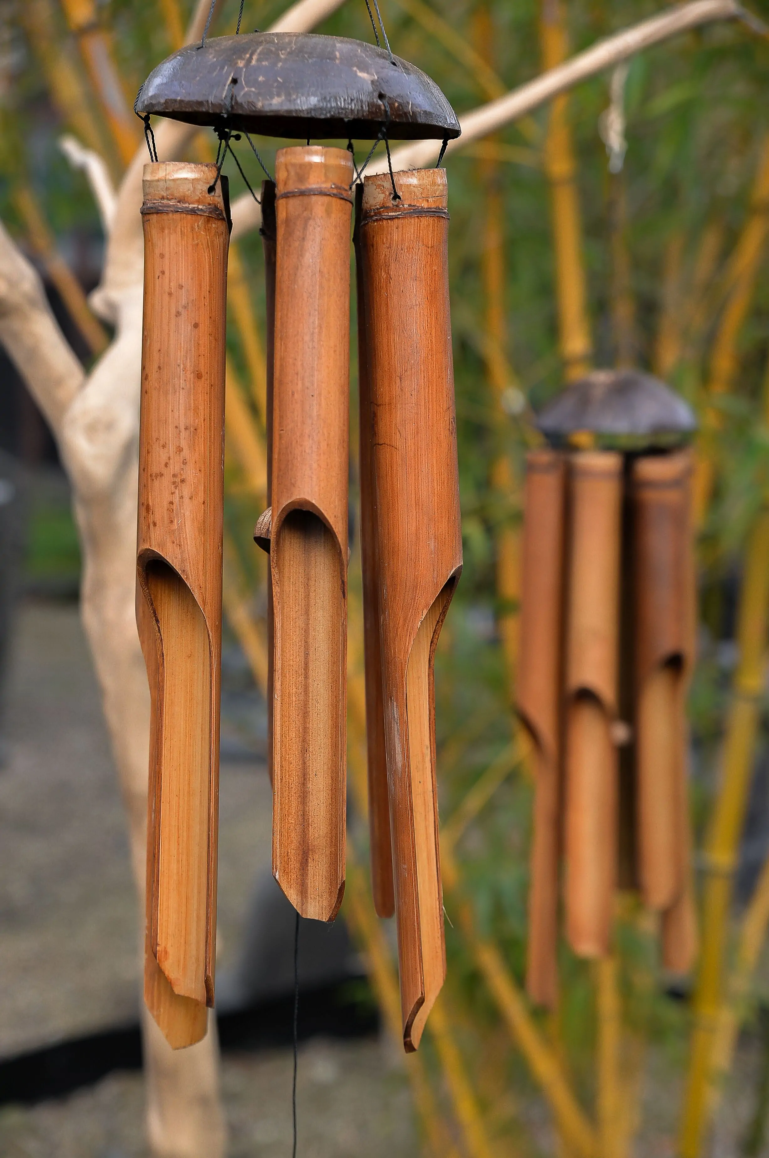 A unique wind chime "Bali", the length is 50 cm. It is made of bamboo and coconut. Natural bamboo wind chime Bamboo wind chime is ideal for balcony, garden, terrace and for indoor use. Each soundplay is a handmade unique piece made of high-quality dried bamboo. The particularly beautiful and calming sounds are produced by light wind.As these are natural materials, slight deviations are possible! As these are natural materials, slight deviations are possible!