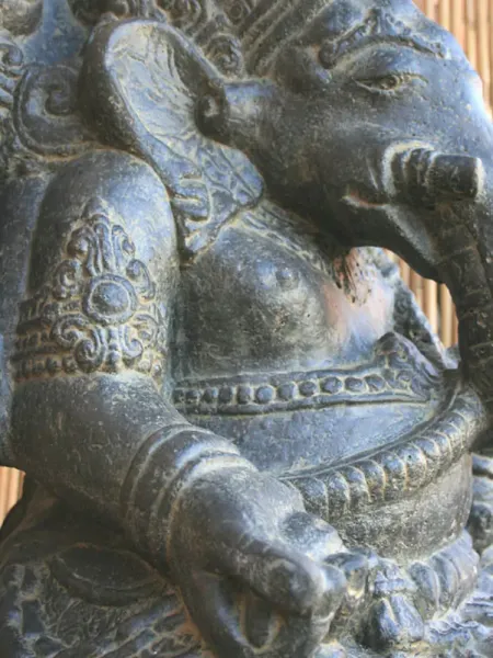 According to tradition, the elephant-headed god is depicted sitting and with a childlike, plump body. The cheerful-positive and at the same time calm, serene and concentrated aura of the sculpture reflects the manifold blessings associated with Ganesha in Hinduism.