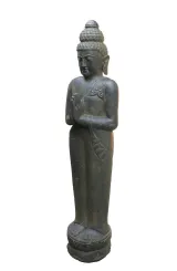 Seated Buddha made of natural stone (basanite) mit with the hand gesture 'welcome', height 100 cm