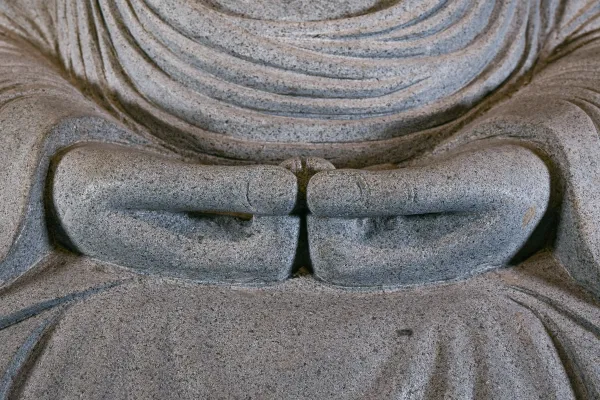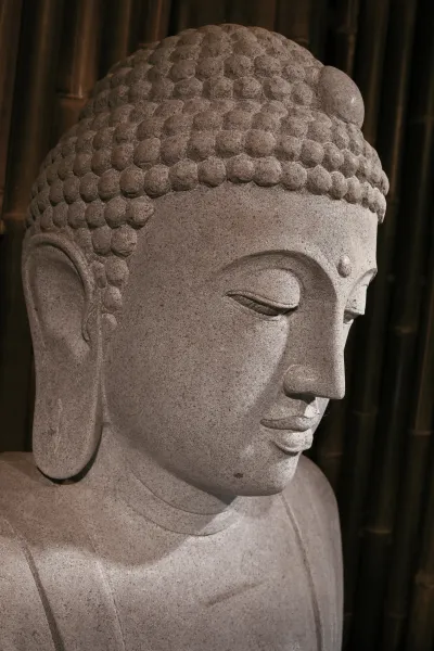 A Buddhasculpture in Japanese style which convinces by its fine elaboration and charisma. The sitting Buddha was made of river stone, a stone similar to granite. This stone is harder than the basanite stone commonly used in our country and can therefore be worked in greater detail and with greater precision. Only few artists have the skills to turn this stone into a highlight.
