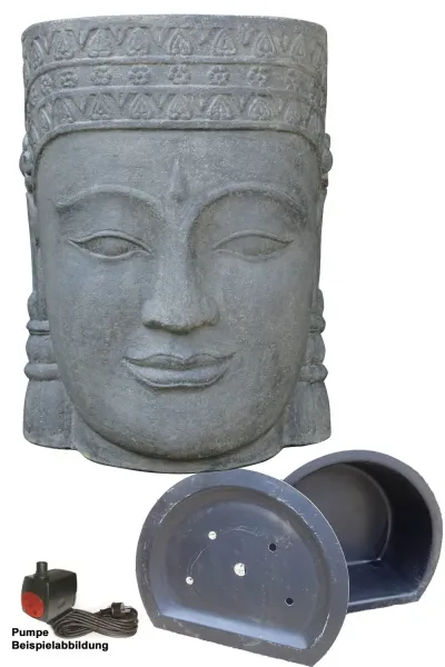 Khmer-head as water feature, 67cm height, cast stone, hollow, handcrafted & coloured