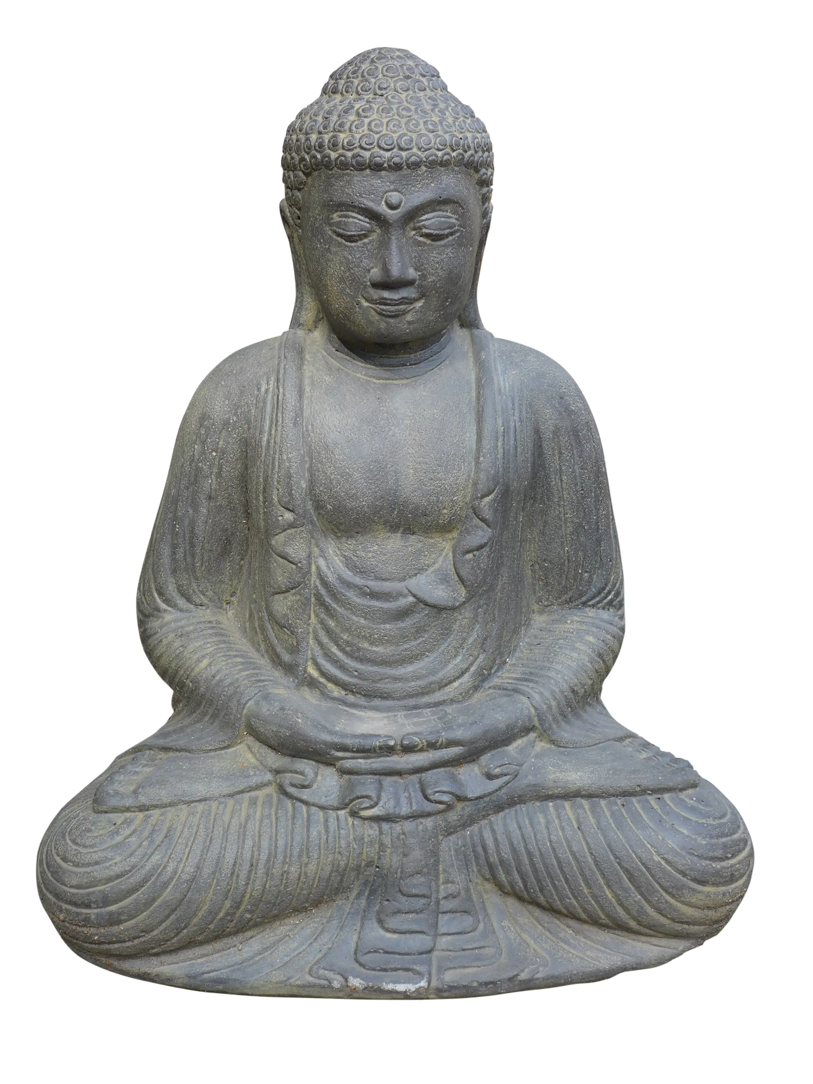 The Japan Buddha made of cast stone symbolizes the moment of awakening with his hand position. The cast stone is absolutely frost and weather resistant. Also as interior a strikingly beautiful decorative sculpture
