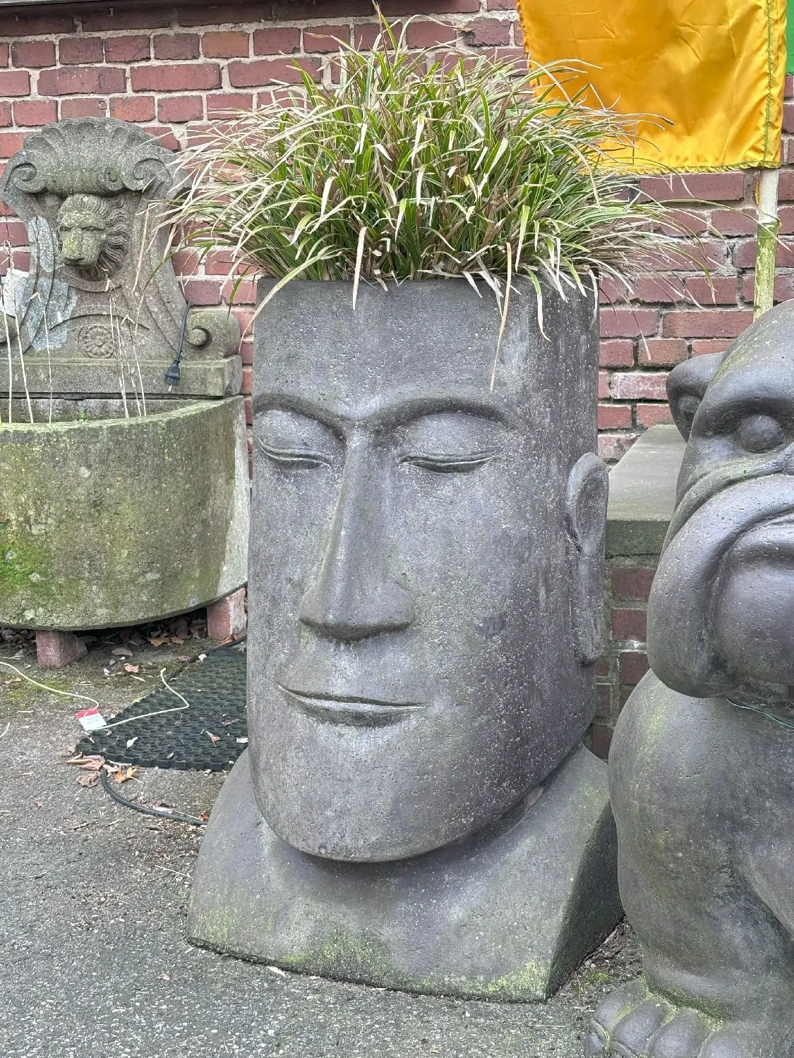 Abstract Head as planter. 60 x 45 x 100 cm. Stone cast, handcrafted & coloured