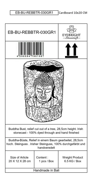 Anwar - Buddha Bust, relief cut out of tree, 28,5cm H | cast stone