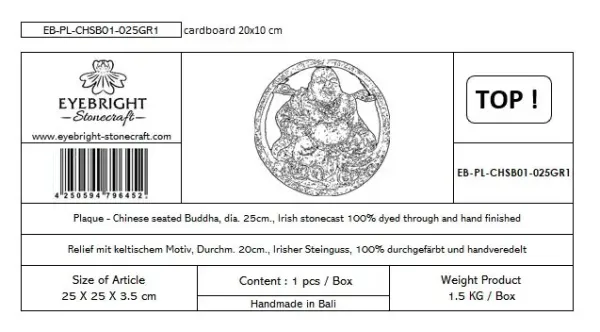 Chung - Plaque - Chinese Buddha seated, Ø 25cm | cast stone