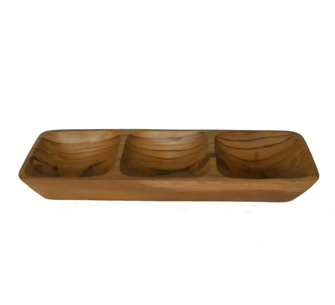 wooden bowl with 3 hole, made of teak wood, 28.5x9x3 cm.