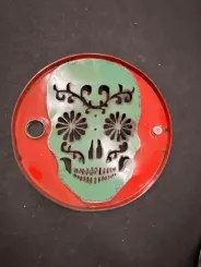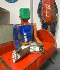Large Mask on Stand - Modell 2, 220cm height, original color, metal art Mask and stand are seperated.