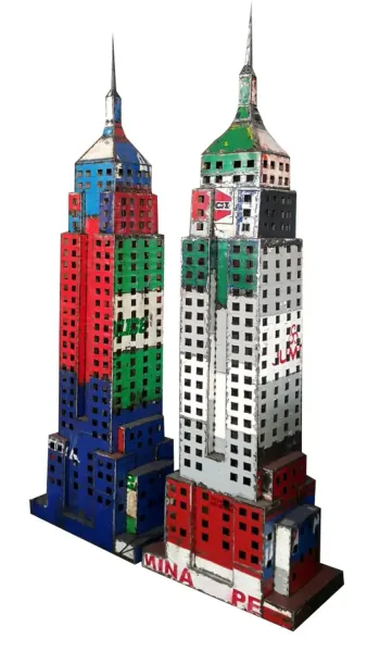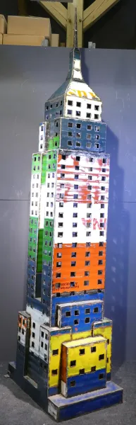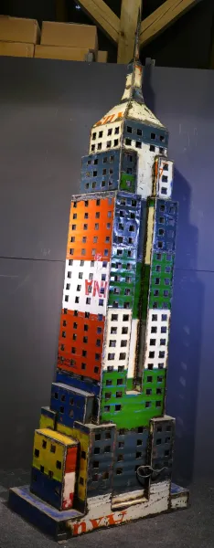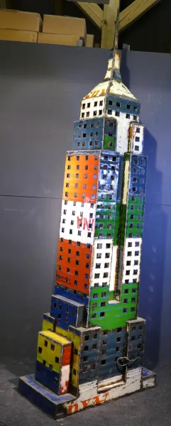 Empire State Building, 240cm height, sculpture from upcyceled oil barrel.