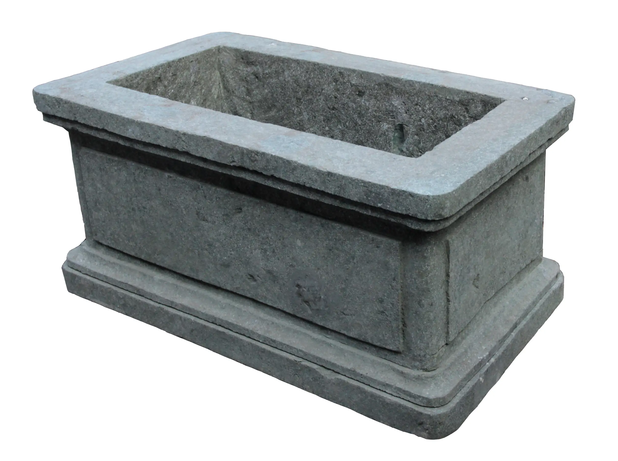 This trough was worked from full basanite rock. The trough gains its authenticity through the characteristic green colouring of the lava stone. Each trough is a unique specimen with a unique character.