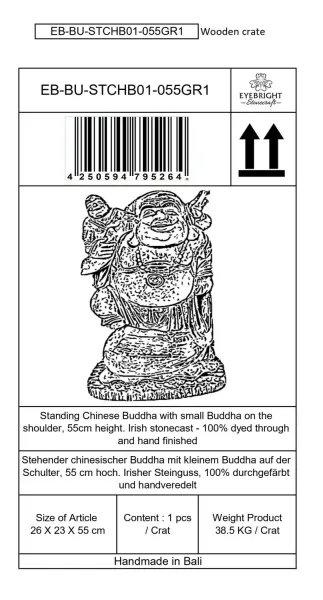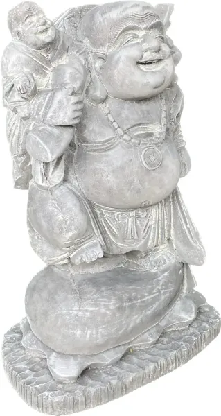 Sammo - Standing Chinese Buddha with small Buddha on shoulder, 55cm H | cast stone