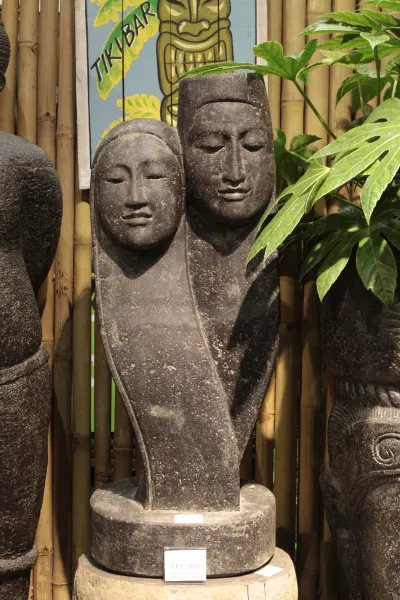 Abstract couple as sculpture. 36 x 36 x 90 cm. Stone cast, handcrafted & coloured