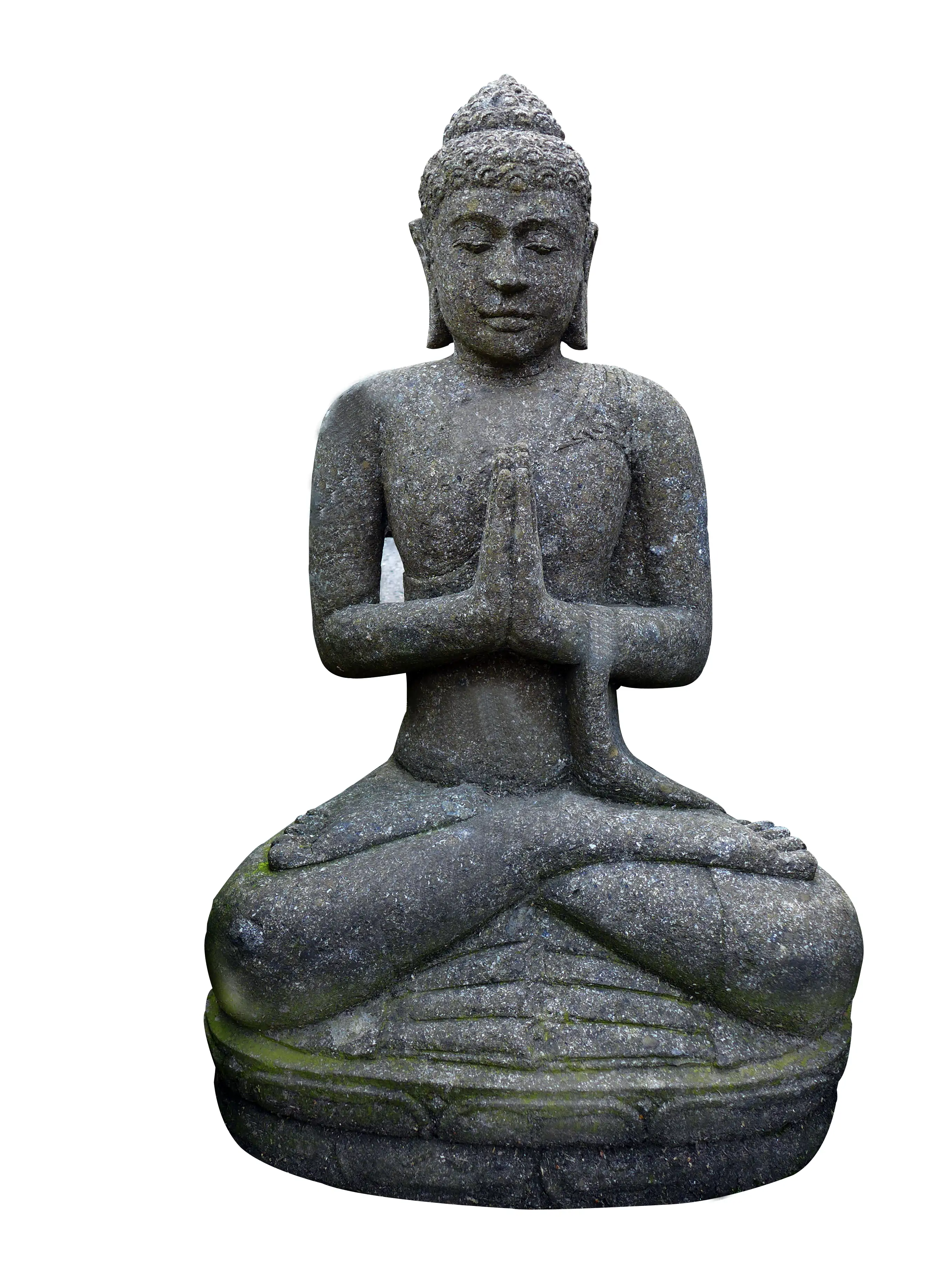 This beautiful Buddha is made of natural stone (basanite) and comes to us from Indonesia. The Buddha has a pleasantly inviting effect on the observer, especially since the Buddha's hand position is a greeting. Thus the Buddha is perfectly suited for a position in your entrance area, from where it promises a friendly and contemplative atmosphere to your visitors. The Buddha can stand outside at any time of the year, as it is of high quality and frost-proof. The historical Buddha advised his followers not to blindly follow any teaching, but to critically question all teachings and to test them on their own experience. This tolerance has a sympathetic effect on most people. The Buddha thus traditionally symbolises serenity and peace. This figure of the Buddha from our shop radiates these qualities wonderfully to its surroundings and brings a good mood in your home.