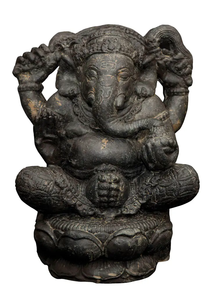 According to tradition, the elephant-headed god is depicted sitting and with a childlike, plump body. The cheerful-positive and at the same time calm, serene and concentrated aura of the sculpture reflects the manifold blessings associated with Ganesha in Hinduism.