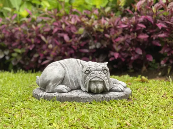 Spike -Small bulldog lying on Base, 38cm L | cast stone
