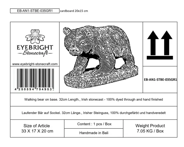 EYEBRIGHT - Stonecraft In Bali we produce this high quality stone cast in our own manufactory. With special process techniques we can produce detailed casts. We mix the raw material with pigments so that the casting is colored throughout. With a special outdoor color we give another superficial accent. During the frost period you should make sure that the figure is not standing in water, but e.g. on a bed of gravel.