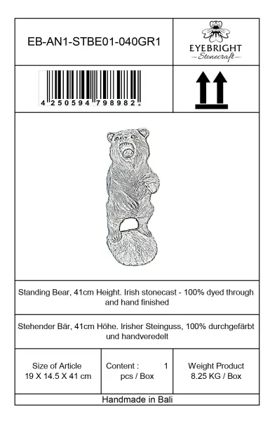 Standing Bear on 2 legs, 41 cm Height | cast stone